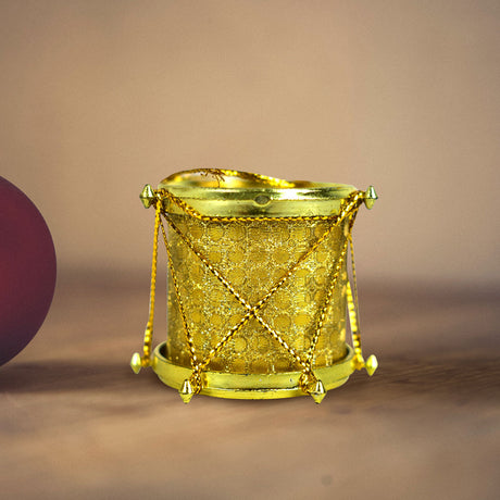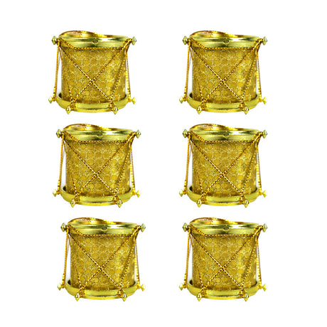 Mini Tamborcitos color Dorado para Decoración Navideña, 6 piezas.
