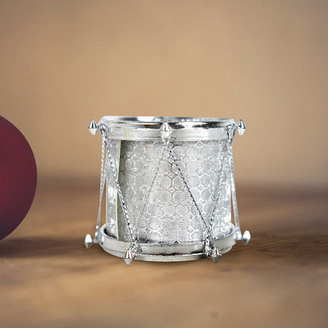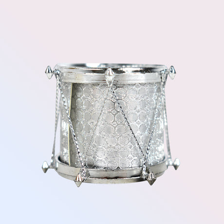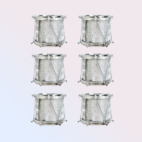 Mini Tamborcitos color Plata para Decoración Navideña, 6 piezas.