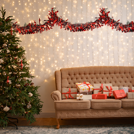 Guirnalda de Escarcha Navideña, color Rojo, 2 metros.