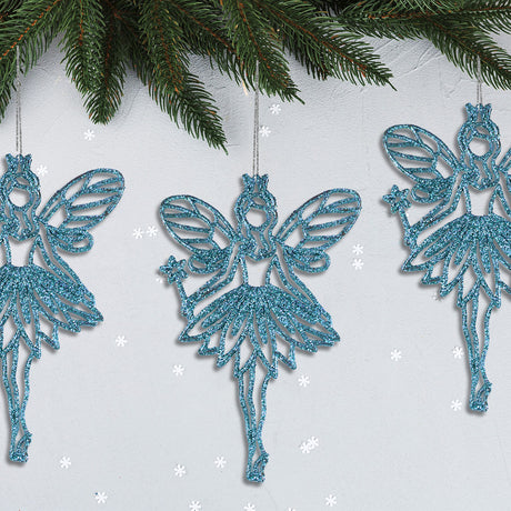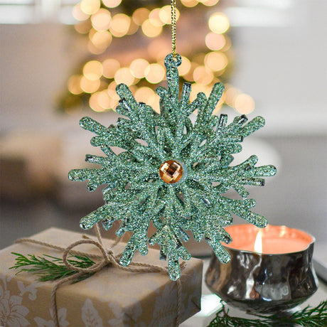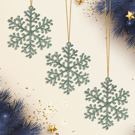Copos de Nieve con Diamantina Aqua, 3 piezas.