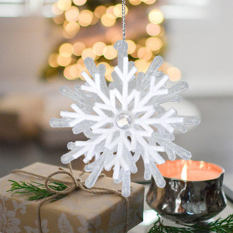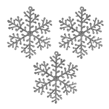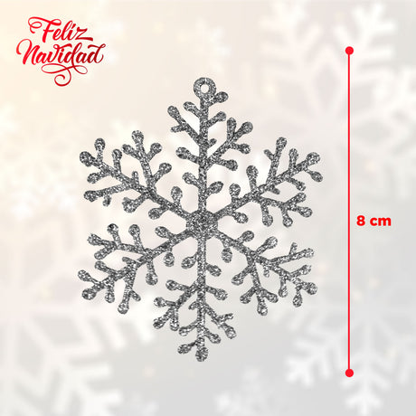 Copos de Nieve con Diamantina Plata, 3 piezas.