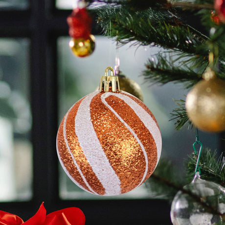 Esferas Navideñas Naranja c/ Blanco, 2 piezas.