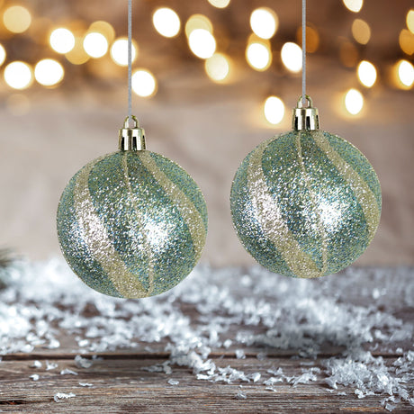 Esferas Navideñas con Diamantina Bicolor, 2 piezas.