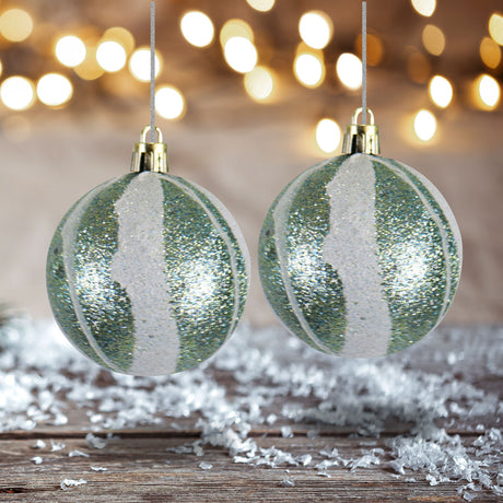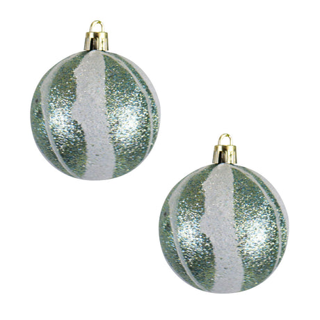 Esferas Navideñas Verde c/ Blanco, 2 piezas.