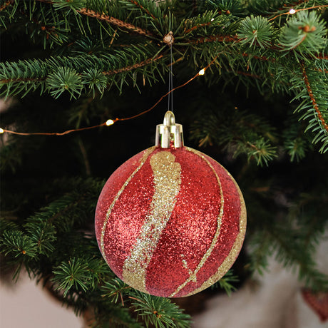 Esferas Navideñas Redondas Rojo y Oro, 2 piezas.
