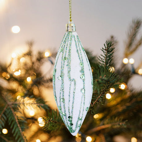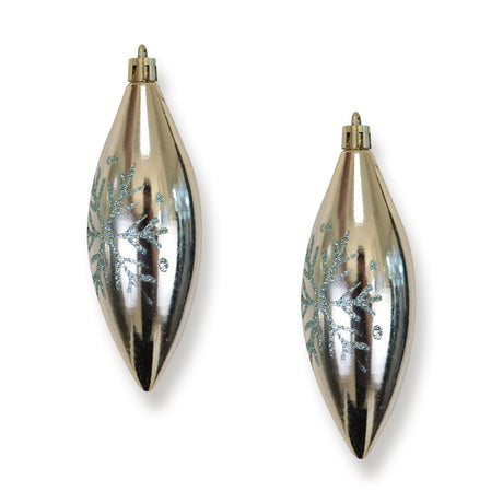 Esferas Navideñas Alargadas color Blanco, 2 piezas.