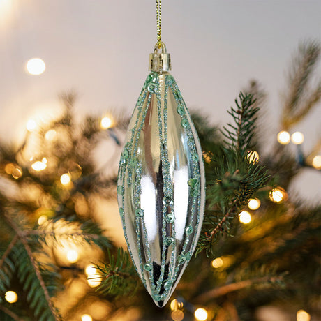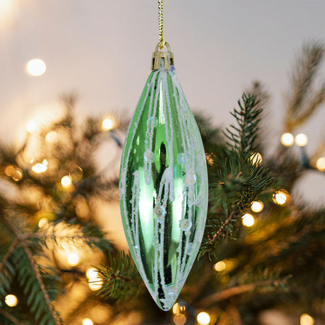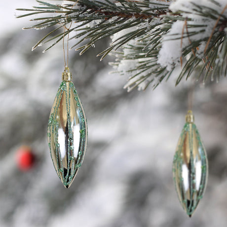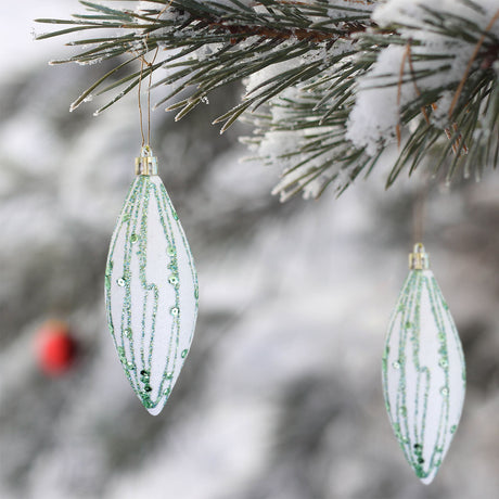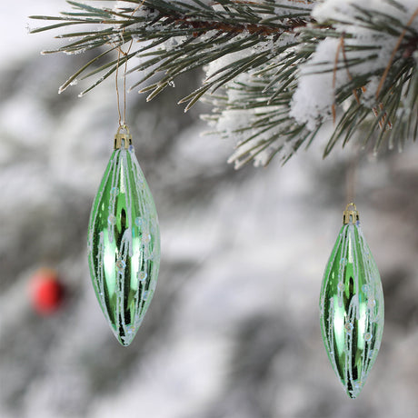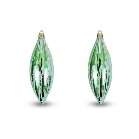Esferas Navideñas Alargadas color Verde, 2 piezas.