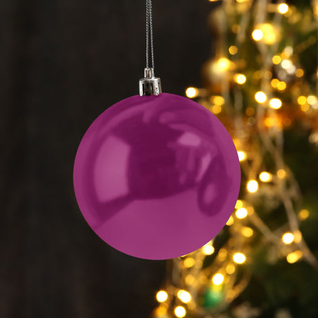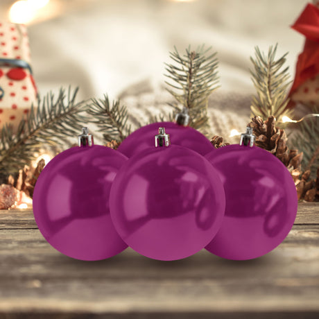 Esferas Navideñas Color Fiusha, 4 piezas.