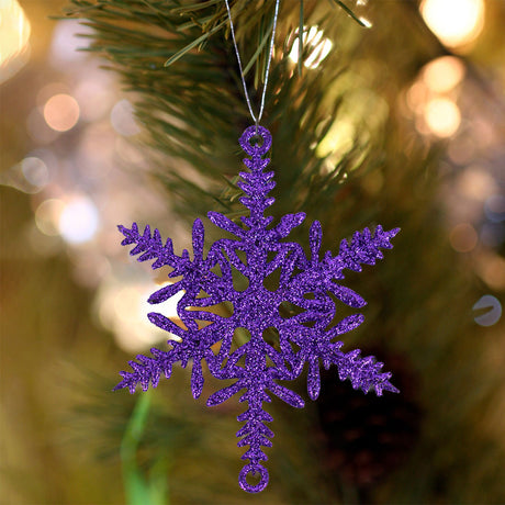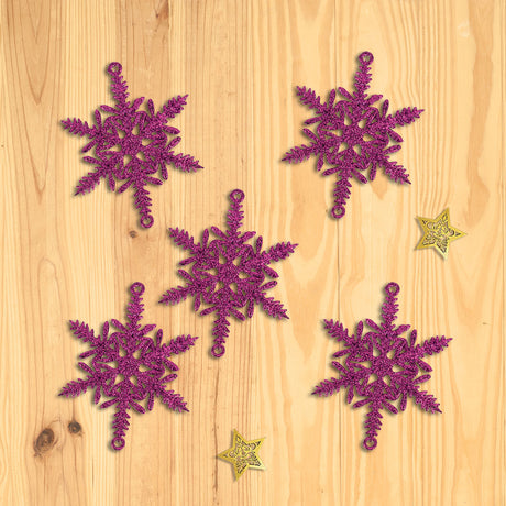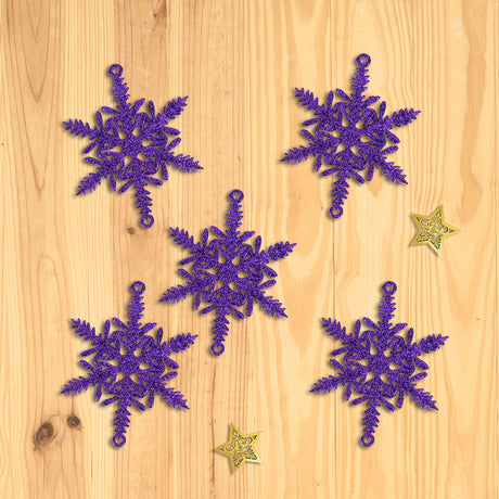 Copos de Nieve con Diamantina color Morado, 5 piezas.