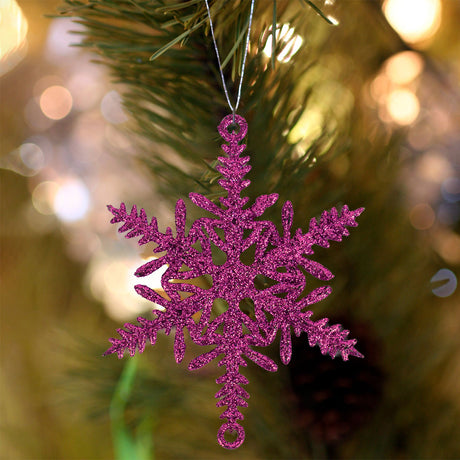 Copos de Nieve con Diamantina color Fiusha, 5 piezas.