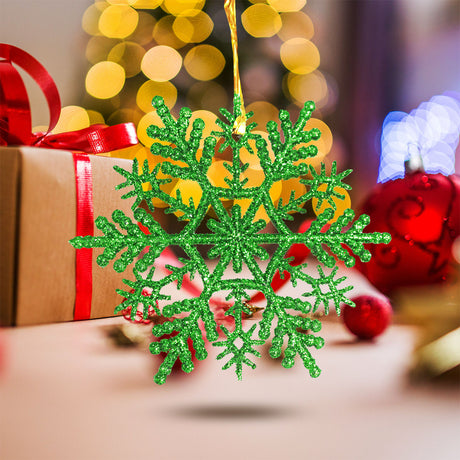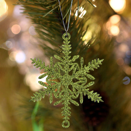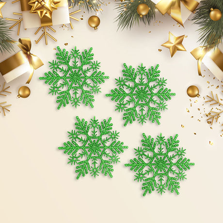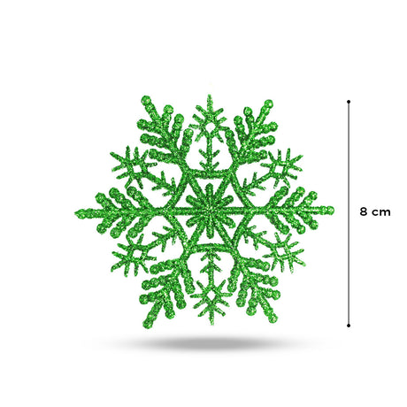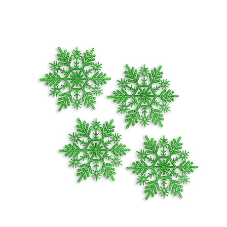 Copos de Nieve con Diamantina Verde, 4 piezas.