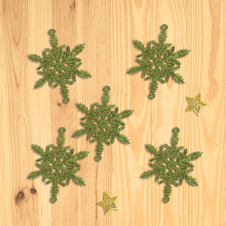 Copos de Nieve con Diamantina color Lima, 5 piezas.
