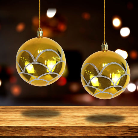 Esferas Navideñas color Dorado con Oxford, 2 piezas.