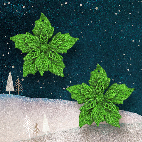 Nochebuenas Decorativas color Verde, 2 piezas.