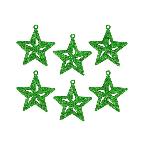 Mini Estrellas con Diamantina color Verde, 6 piezas.