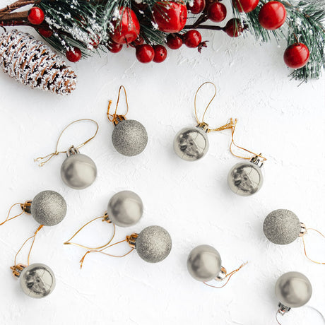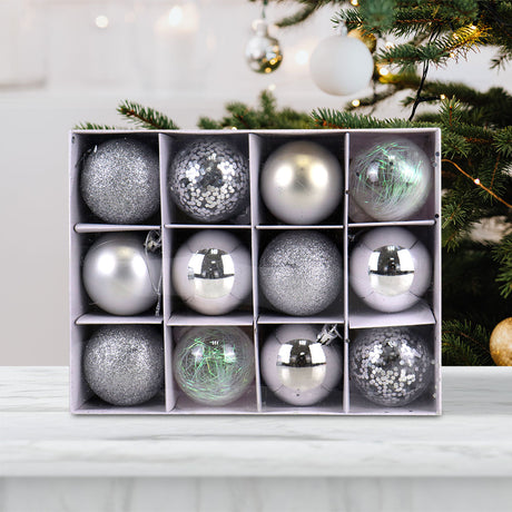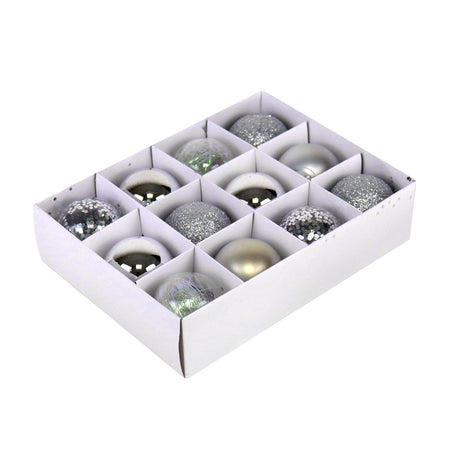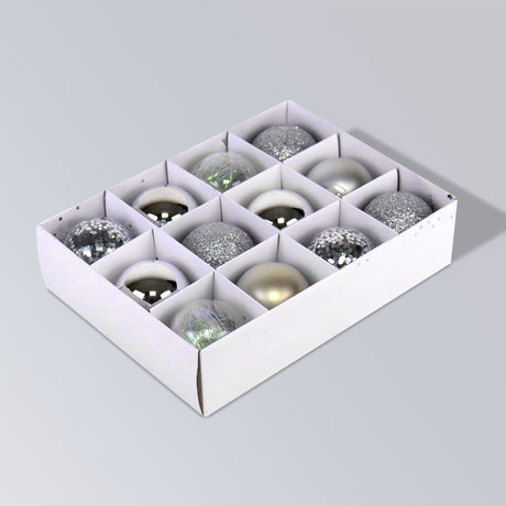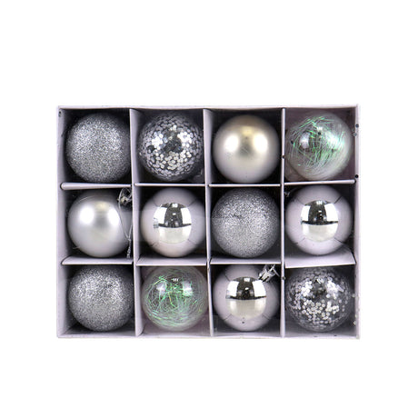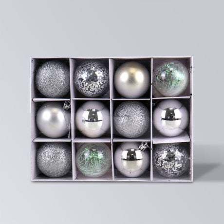 Set Variado de Esferas Navideñas Color Plateado, 12 piezas.