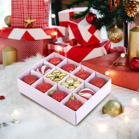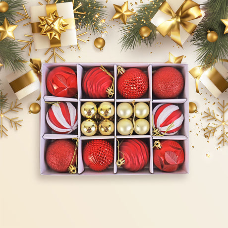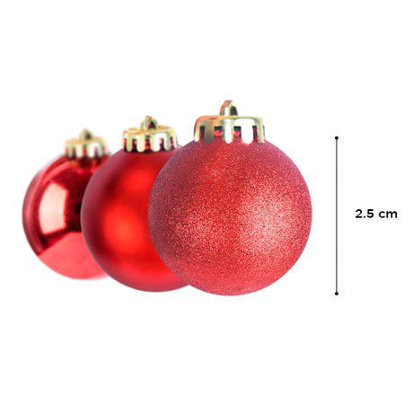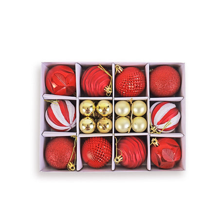 Set Variado de Esferas Navideñas Color Rojo con Blanco, 30 piezas.