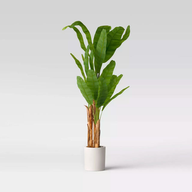 - Colocado en una elegante maceta blanca para darle un toque simplemente elegante, este árbol de plátano falso de tamaño generoso está hecho de materiales duraderos que se limpian fácilmente para un cuidado simple.