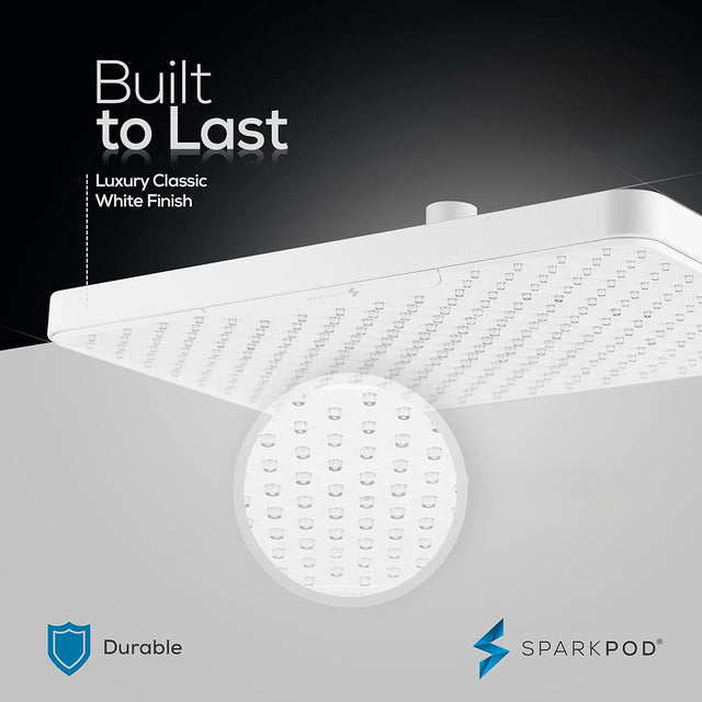 Cabezal de Ducha de Lluvia Rectangular color Blanco, SparkPod está agotado y se enviará tan pronto como vuelva a estar disponible.