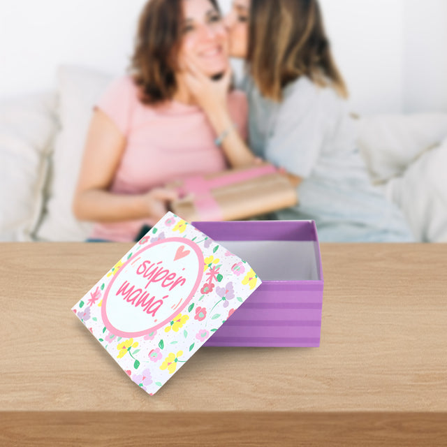 - Sorprende a mamá con esta bonita caja de regalo con frase y bonita decoración