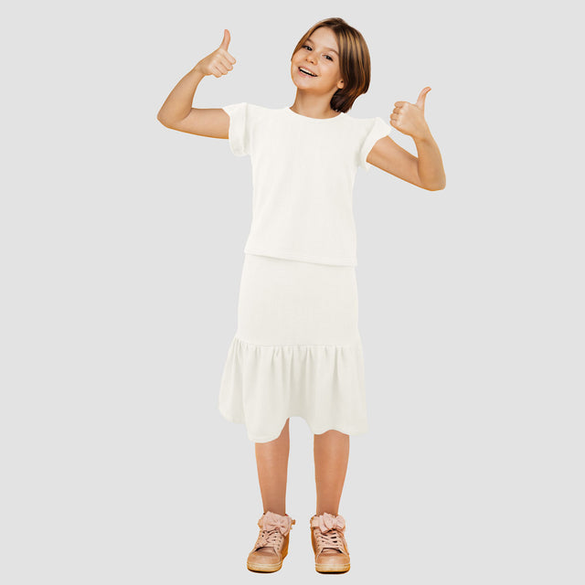 Conjunto de Blusa con Falda para Niña, color Blanco