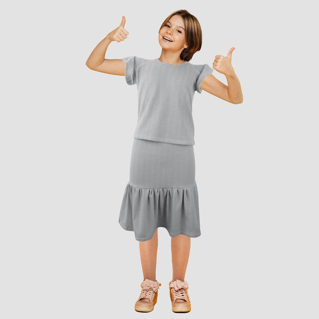 Conjunto de Blusa con Falda para Niña, color Gris - Talla: 6 está agotado y se enviará tan pronto como vuelva a estar disponible.