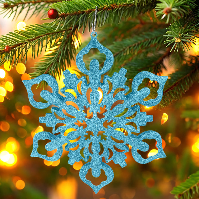 - Añade un toque de encanto invernal a tu decoración navideña con este copo de nieve adornado con diamantina.