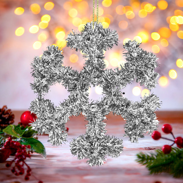 ¡Dale un toque brillante y festivo a tu decoración navideña con este copo de nieve de tinsel!