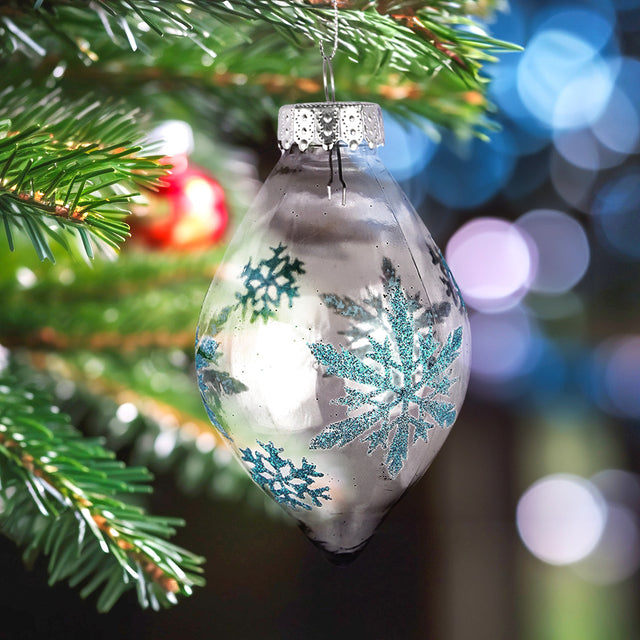 Esfera Navideña Alargada Transparente/Azul