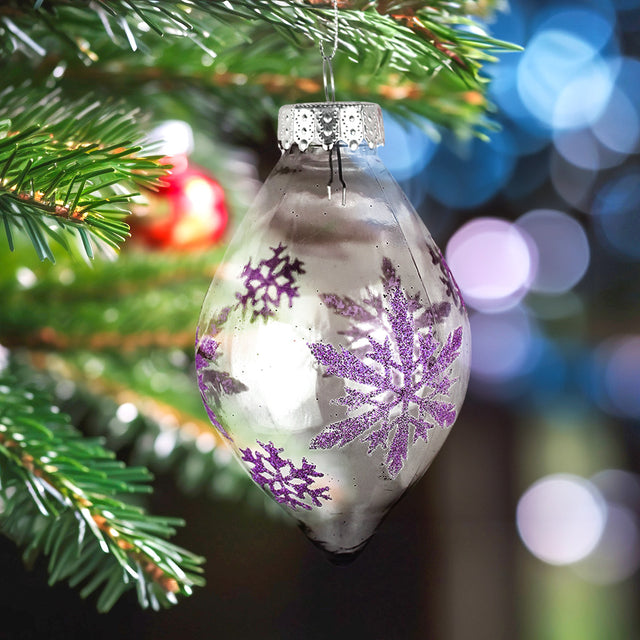 Esfera Navideña Alargada Transparente/Morado