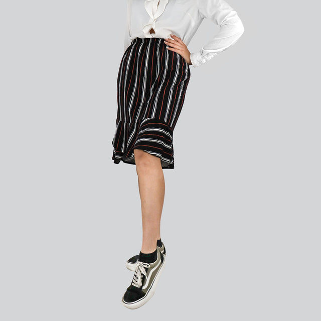 Falda Casual con Abertura color Negro con Blanco para Dama