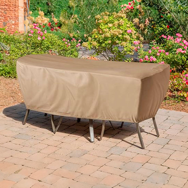 - Protege tus muebles de patio de los elementos con esta funda de vinilo.