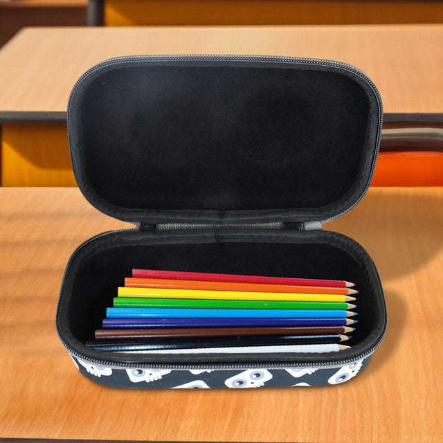 - Este estuche para lápices para niños presenta un patrón de cara de esqueleto único, perfecto para los niños que aman los diseños espeluznantes.