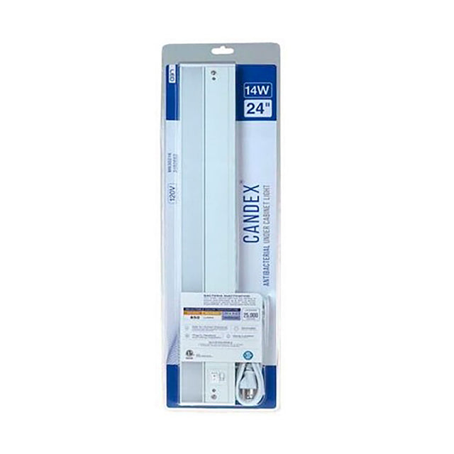 • 24" (60.9cm) 120V 14W 850 Lumen antibacterial debajo de la luz del gabinete.