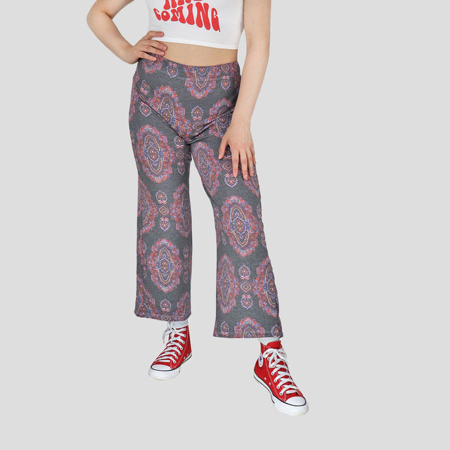 Pantalón Casual color Gris con Estampado Rosa para Dama