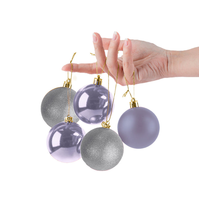 • Diseños diversos: Incluye 2 esferas con diamantina, 2 esferas brillantes y 1 esfera mate.