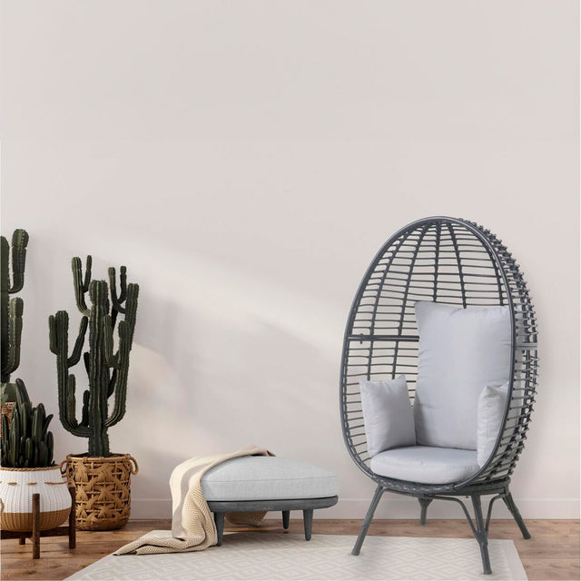 - La colección Poppy está diseñada para llevarte en unas minivacaciones justo en tu patio trasero. Esta silla con forma de huevo boho chic crea un capullo acogedor con sus suaves cojines cómodos que te llamarán para acurrucarte con un buen libro o amigo.