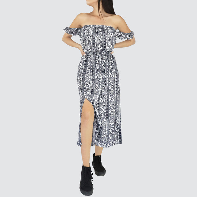 Vestido Casual con Hombros Descubiertos para Dama, color Blanco