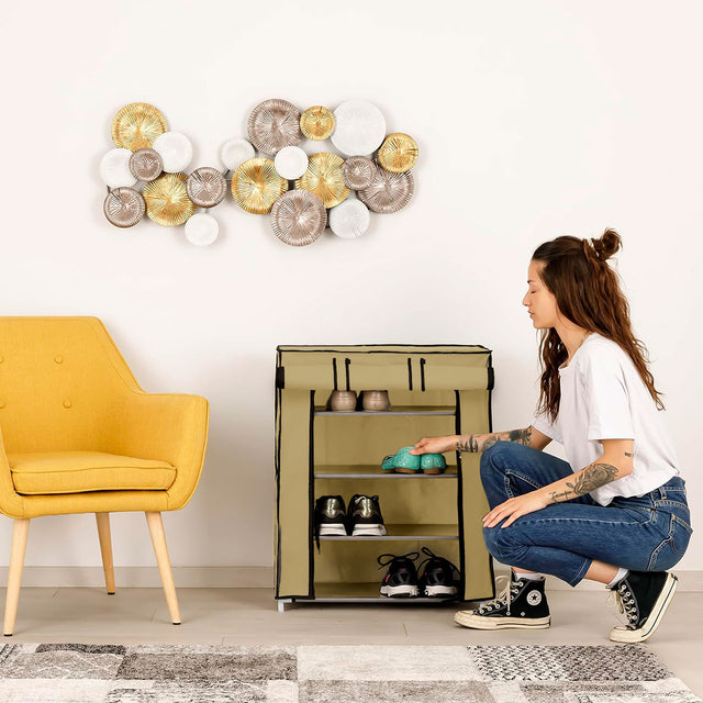 Zapatera con Cubierta de Tela, color Beige, 4 niveles