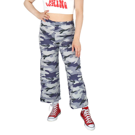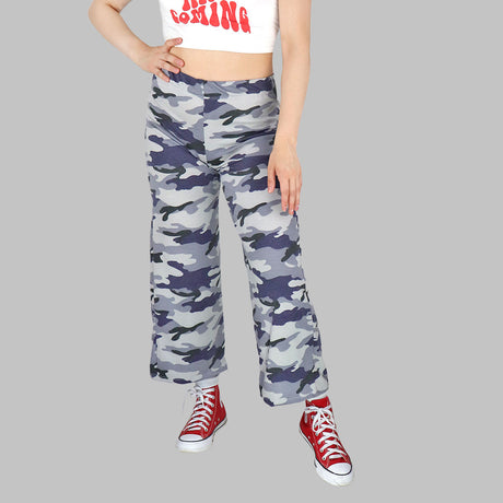 Pantalón Casual color Gris con Estampado Azul para Dama