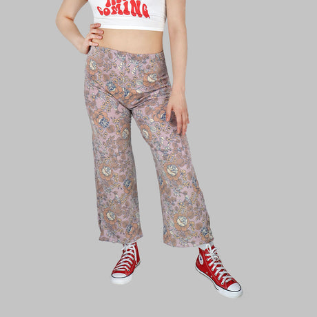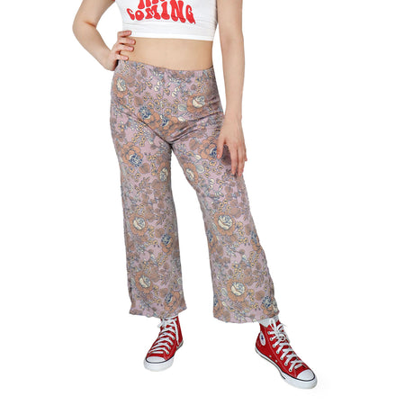 Pantalón Casual color Lila con Estampado de Flores Beige para Dama
