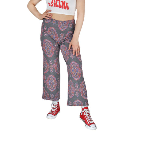Pantalón Casual color Gris con Estampado Rosa para Dama