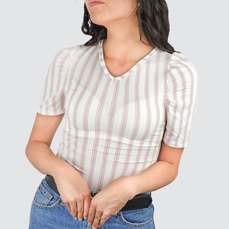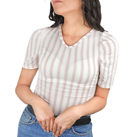 Blusa Juvenil con Manga Tipo Princesa para Dama, color Blanco con Beige