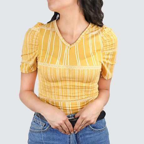 Blusa Juvenil con Manga Tipo Princesa para Dama, color Amarillo