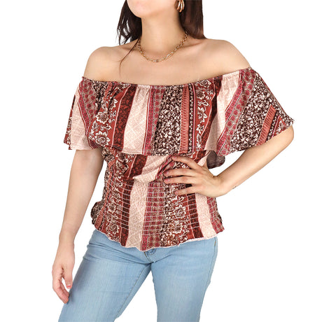 Blusa Campesina para Dama, color Café con Rosa