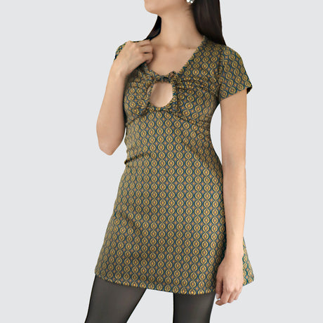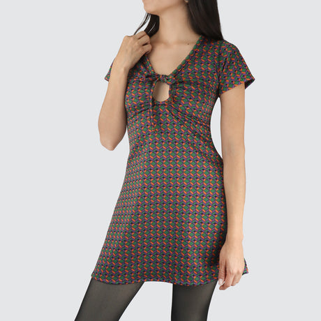 Vestido Juvenil con Abertura Frontal color Verde con Naranja