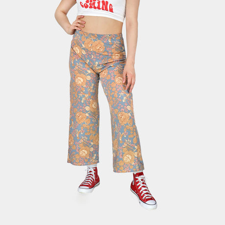 Pantalón Casual color Azul con Estampado de Flores Beige para Dama