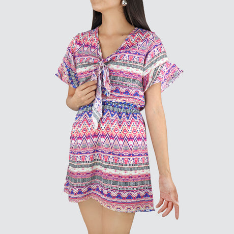 Vestido Juvenil con Moño Frontal color Rosa con Azul
