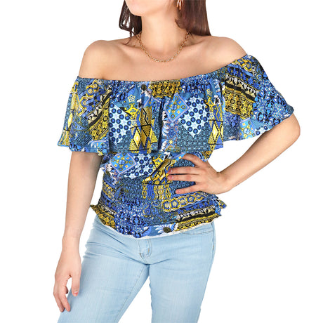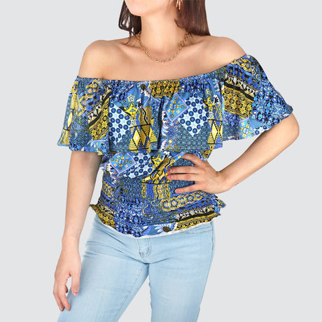 Vestido Casual con Diseño de Flores para Dama, color Azul con Naranja