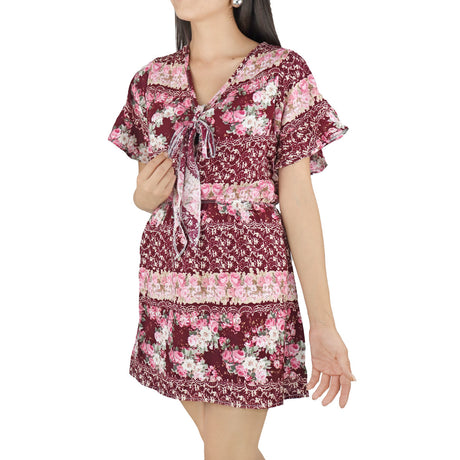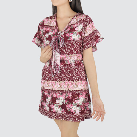 Vestido Juvenil con Moño Frontal color Vino con Rosa